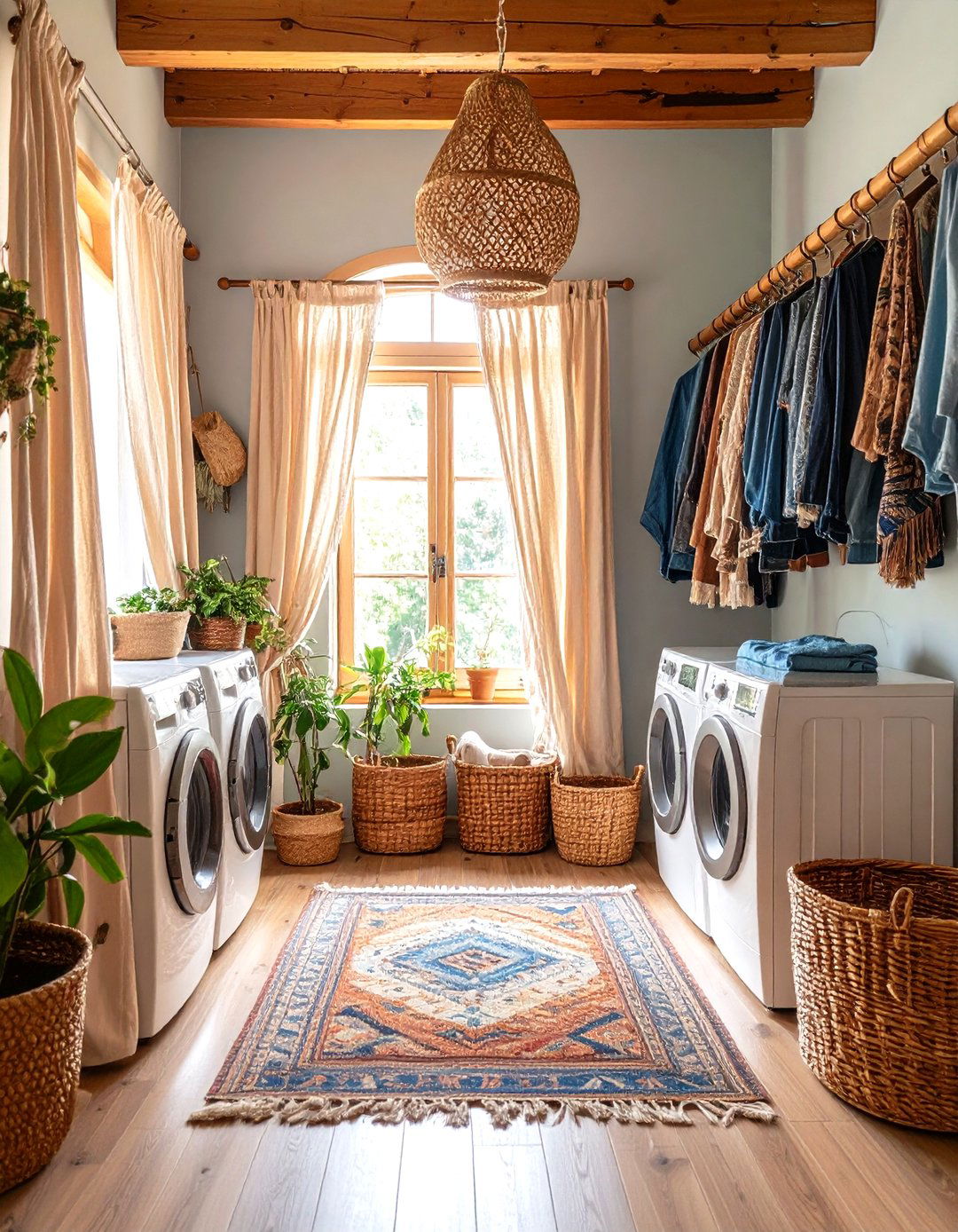Laundry rooms deserve beautiful window treatments that combine style with practicality. These curtain ideas transform your utility space from purely functional to genuinely inviting. Smart fabric choices handle humidity while adding personality through colors, patterns, and textures. From farmhouse charm to modern minimalism, the right curtains create a cohesive design that makes laundry tasks more enjoyable. Consider your room's lighting needs, moisture levels, and overall aesthetic when selecting treatments. Whether you need privacy, light control, or simply want to hide storage areas, thoughtful curtain choices elevate this hardworking space into a room you actually want to spend time in.