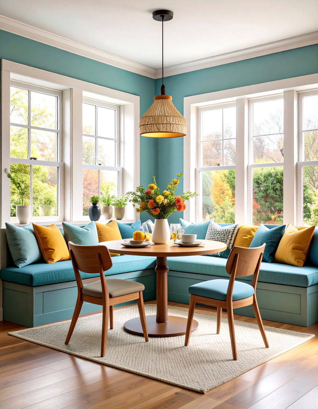 Why should morning coffee be rushed when it could be savored? Cozy breakfast nooks create intimate spaces perfect for casual meals and quiet morning routines through built-in seating and thoughtful lighting design. Banquette seating maximizes space efficiency while providing comfortable gathering areas for family meals. Natural light from adjacent windows creates cheerful morning atmospheres, while pendant lighting provides task illumination for evening use. Built-in storage beneath seating accommodates table linens and serving pieces. Round or oval tables encourage conversation and connection. Cushions and textiles add comfort and color, while nearby cabinetry provides convenient storage for breakfast essentials. These intimate spaces encourage slower, more mindful meal experiences.